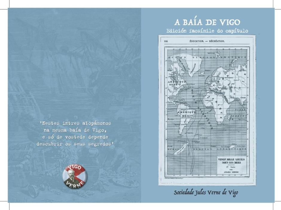 A Sociedade Jules Verne de Vigo (SJVV), asociación cultural fundada no 2012, presentou este martes 26 de novembro, ás 19.30 horas, na biblioteca da Escola Municipal de Artes e Oficios (EMAO), a edición facsimilar do capítulo ‘A baía de Vigo’, que foi publicado hai agora 150 anos no ‘Magasin d’Éducation et de Récréation’ . O capítulo da novela ’20.000 leguas baixo dos mares’, de Jules Verne, é un dos principais desta obra, unha das máis populares e traducidas da historia en todo o mundo, e trae ao submarino Nautilus do capitán Nemo ata a ría de Vigo para rescatar os tesouros da batalla de Rande.