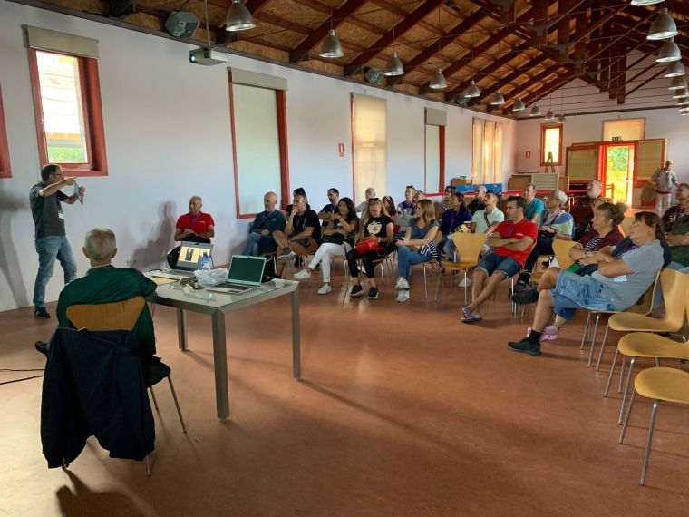 O acto foi presentado por Eduardo Rolland, presidente da SJVV. Na súa intervención, Rolland, repasou brevemente a historia da sociedade, fundada en 2012, e as actividades que desde ese ano veñen levándose a cabo. Destacou, neste 2025, a presenza na Senda Azul e o proxecto de instalar unha réplica do submarino Nautillus nalgún lugar da cidade, pola que tanto se esforzara o noso malogrado socio e amigo, Domingo Villar.