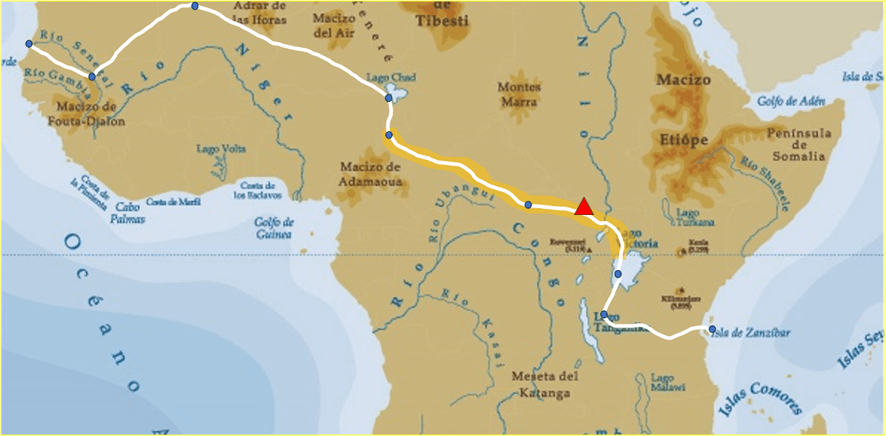 Itinerario de Samuel Ferguson en “Cinco semanas en Globo”